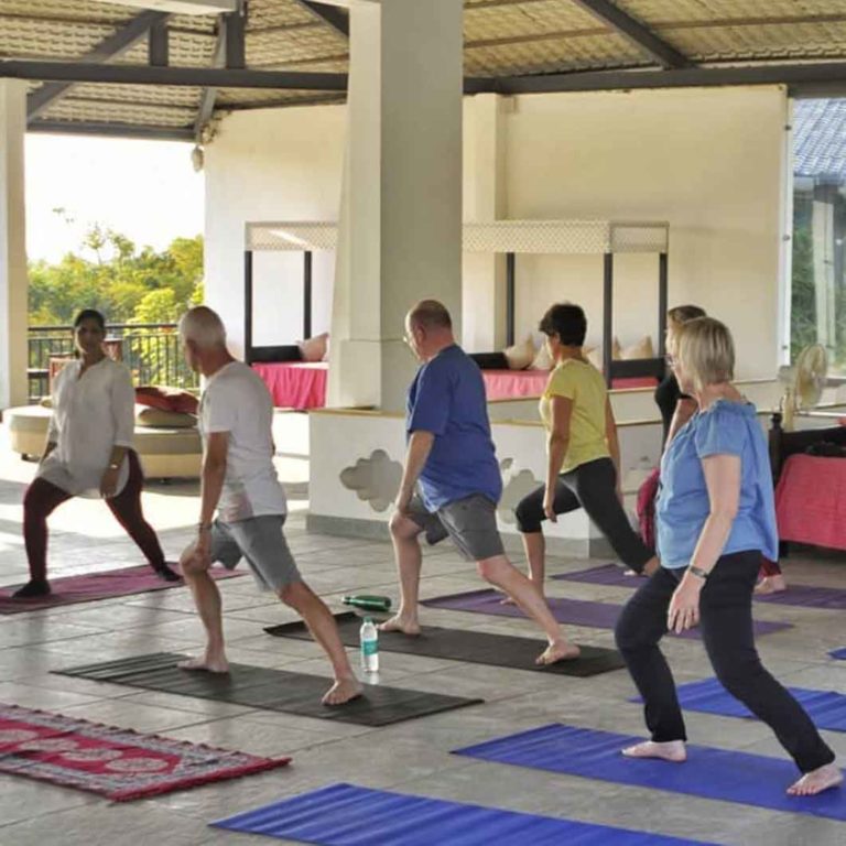 Private classes can be arranged on the lawns, where you can enjoy stunning views of the surrounding hills and the serene lake.